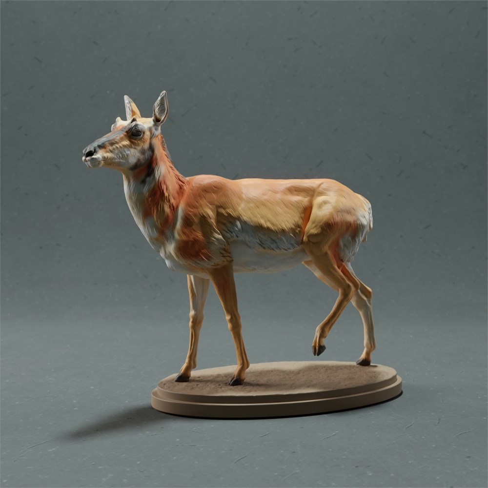 Pronghorn Female - детализированная фигурка самки антилопы-прыгуна. Длина данной особи от кончика носа до хвоста составляет 1,6 м, соответственно в масштабе 1:32 - 51 мм. По вашему желанию мы можем изготовить данную фигурку в нужных вам размерах и масштабе. Фигурка предназначена для самостоятельной покраски. Клей и краски в комплект не входят.