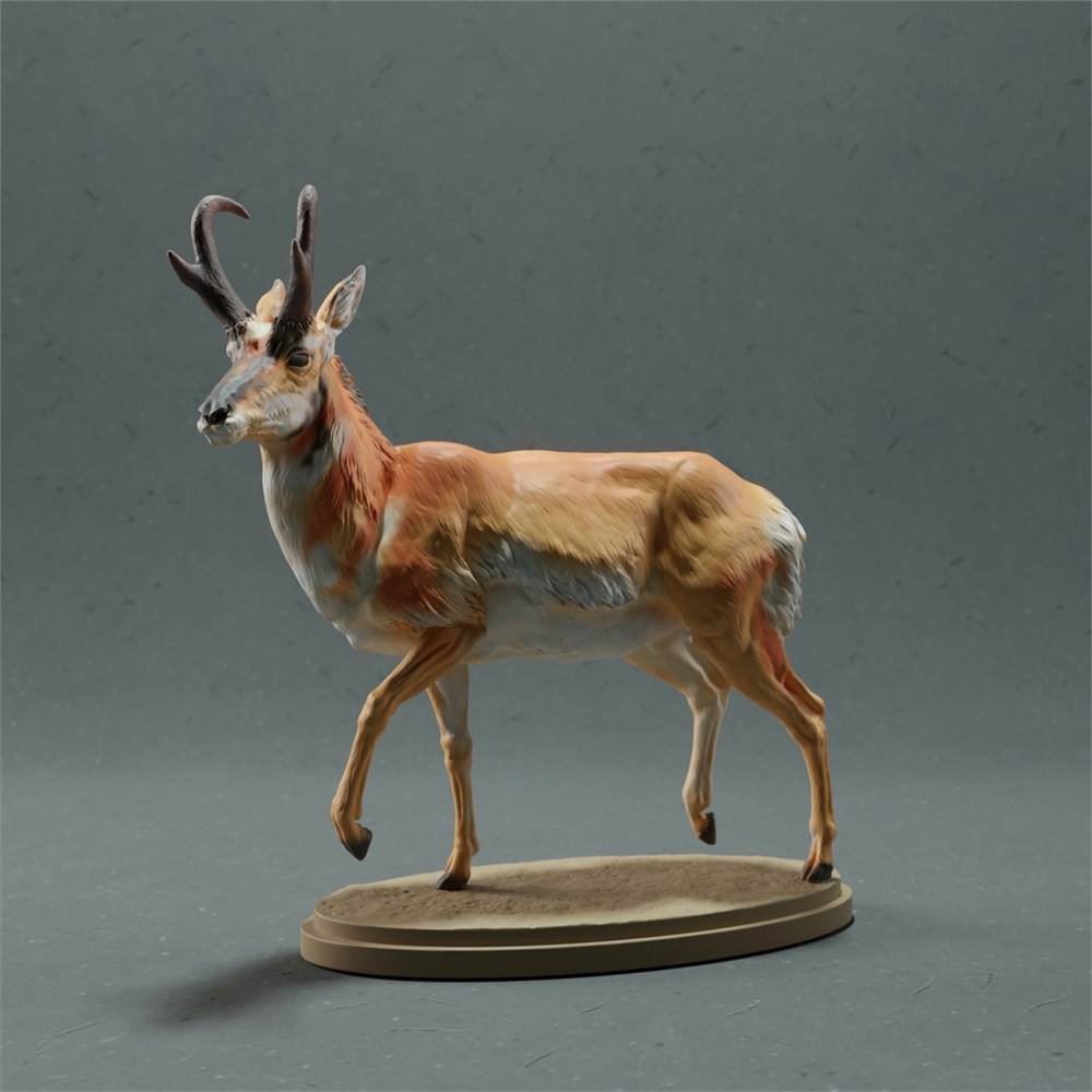 Pronghorn Male - детализированная фигурка самца антилопы-прыгуна. Длина данной особи от кончика носа до хвоста составляет 1,6 м, соответственно в масштабе 1:32 - 51 мм. По вашему желанию мы можем изготовить данную фигурку в нужных вам размерах и масштабе. Фигурка предназначена для самостоятельной покраски. Клей и краски в комплект не входят.